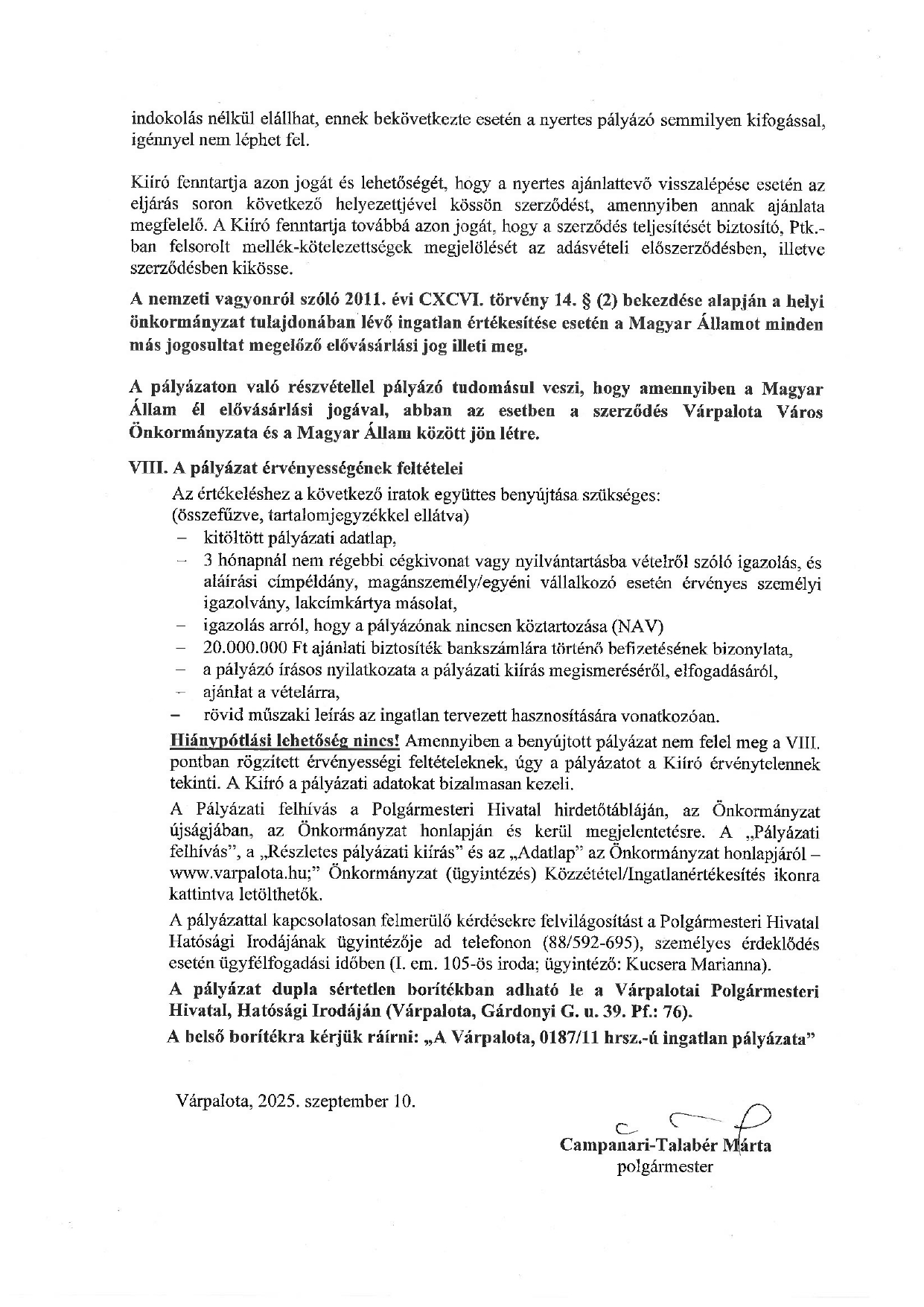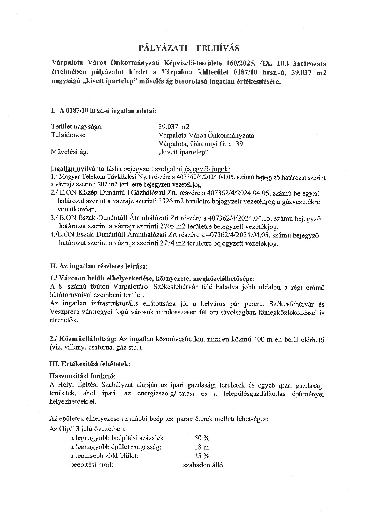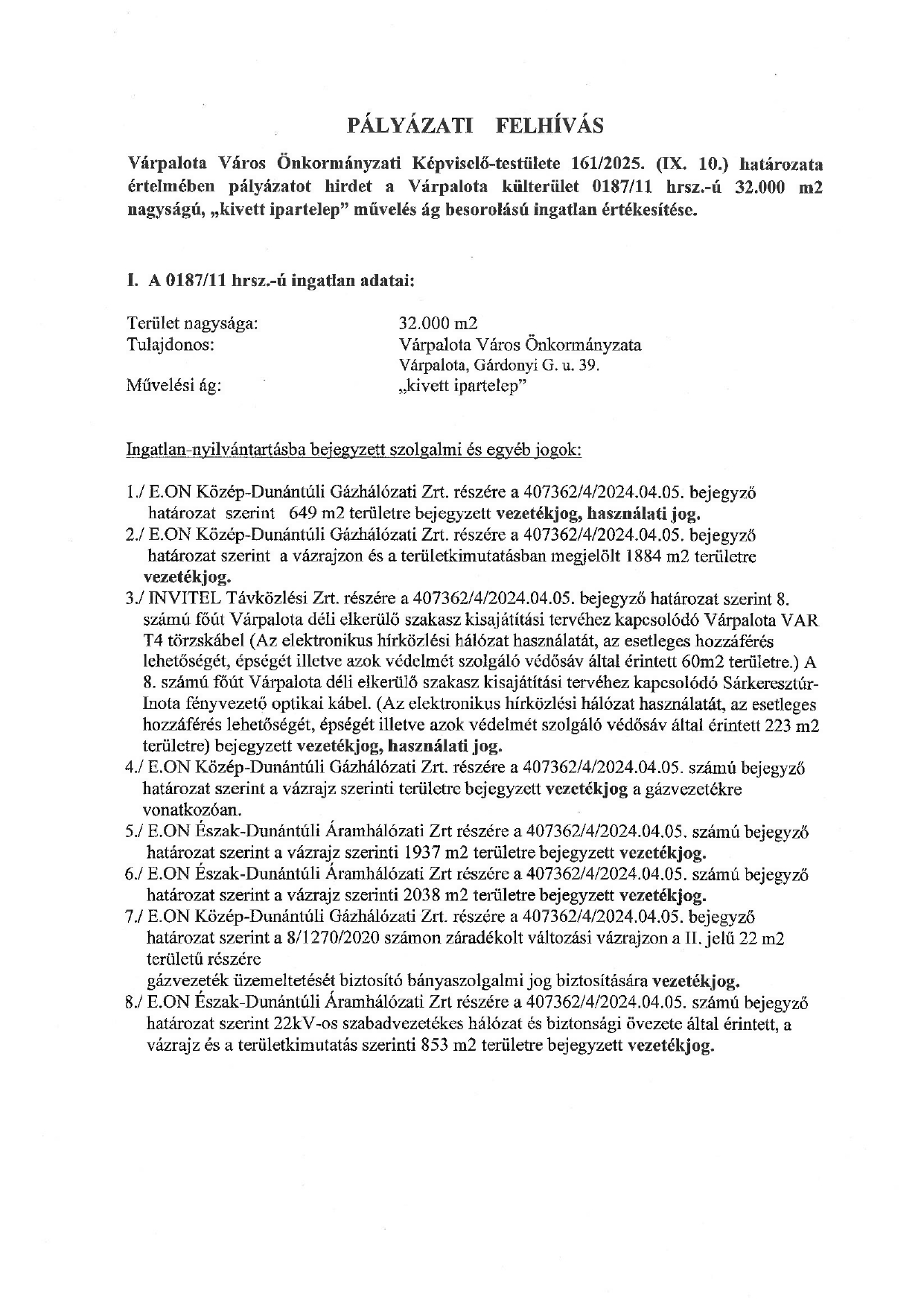 Pályázati felhívás eladásra kínált külterületi ingatlanról – Várpalota város hivatalos oldala