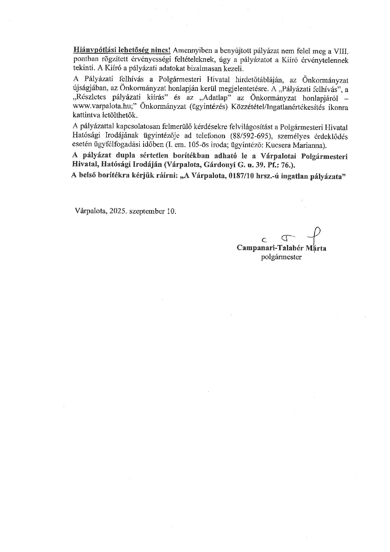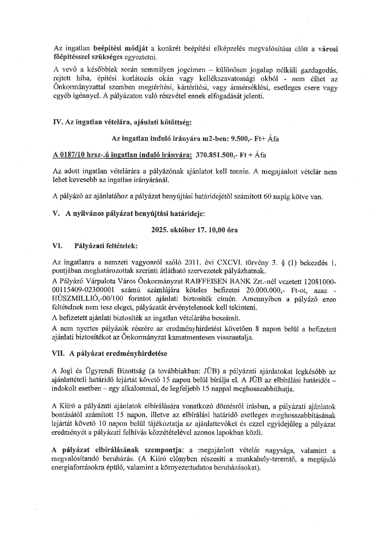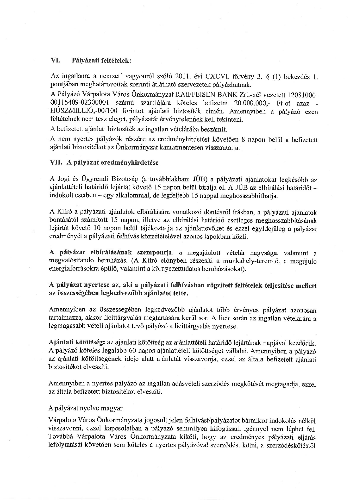 Pályázati felhívás eladásra kínált külterületi ingatlanról – Várpalota város hivatalos oldala