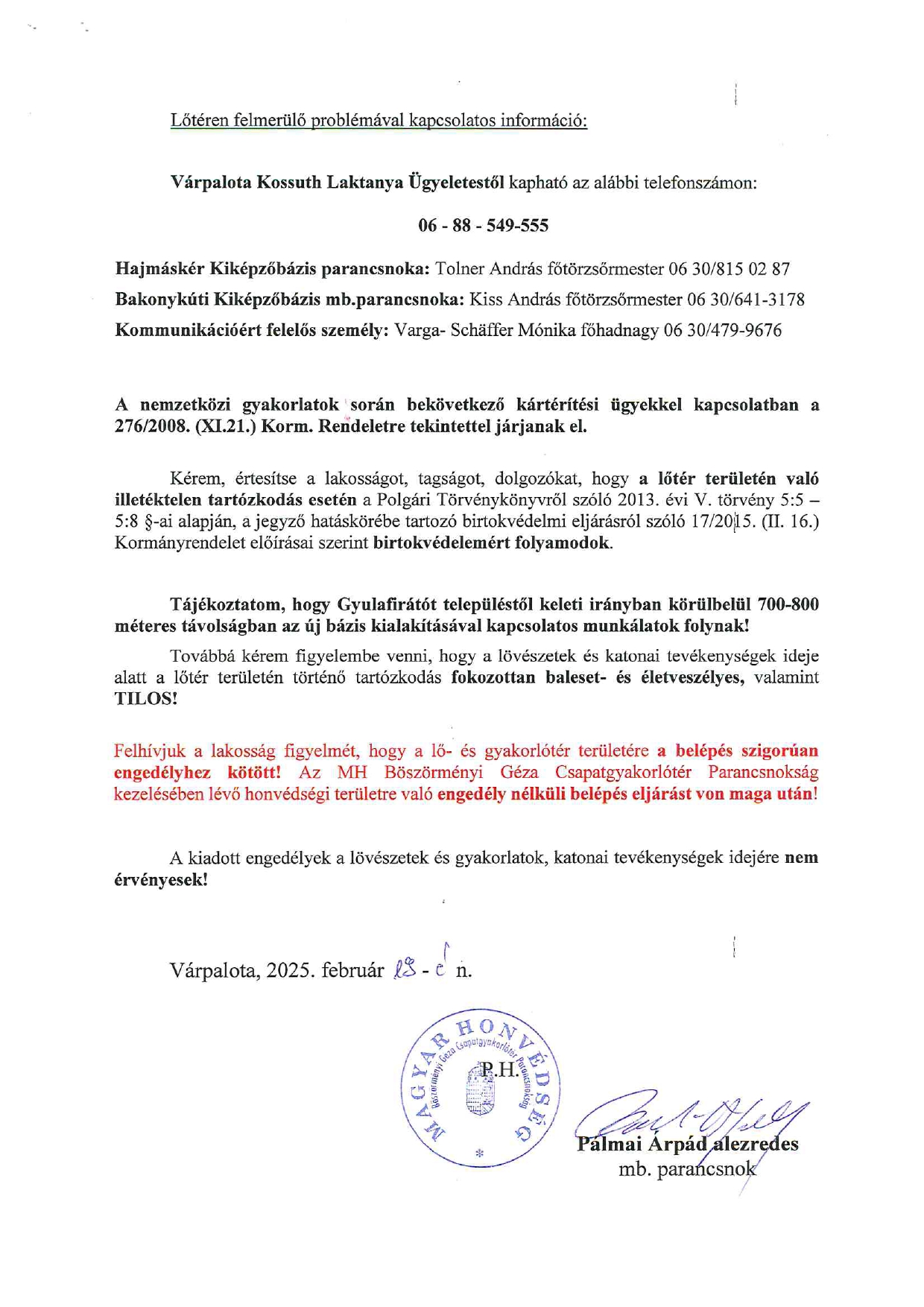 Márciusi lőtérértesítő – Várpalota város hivatalos oldala
