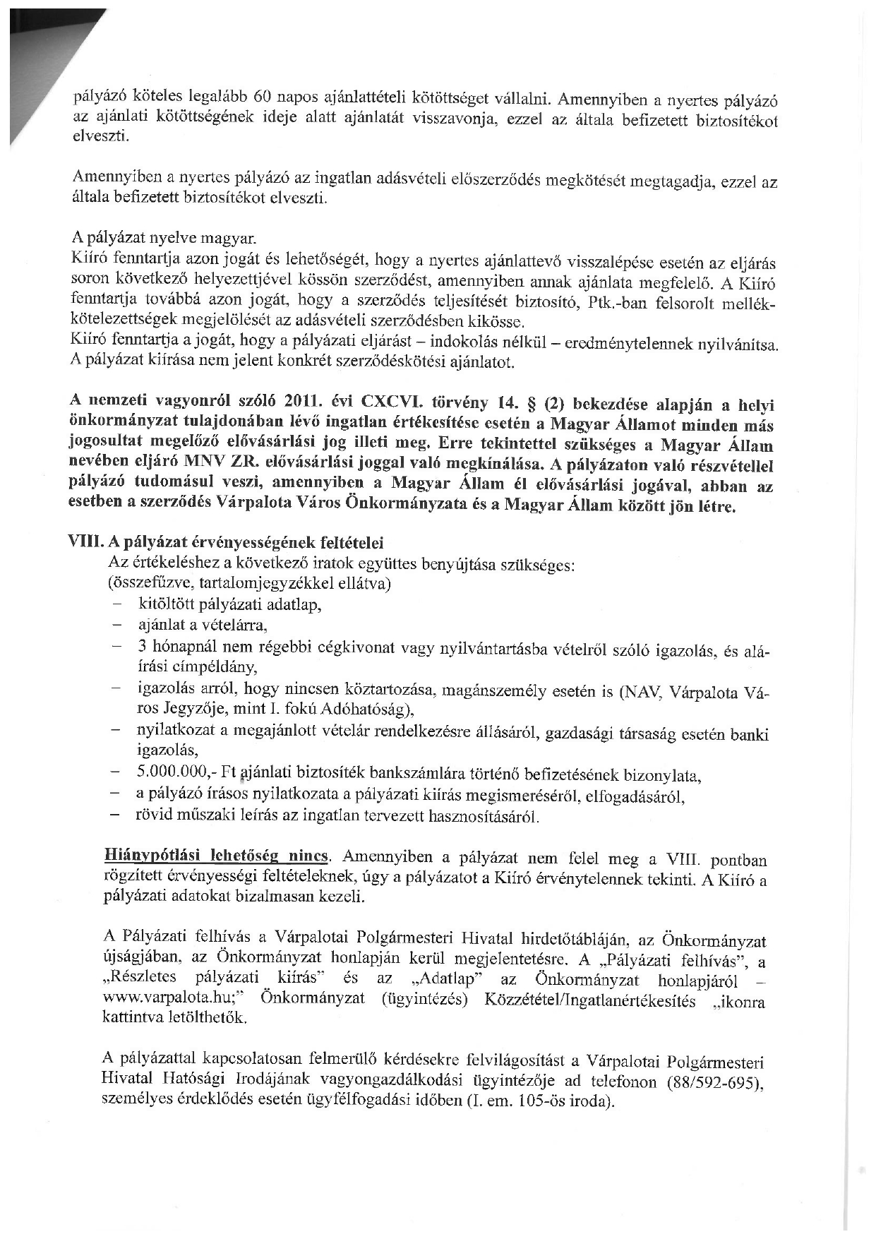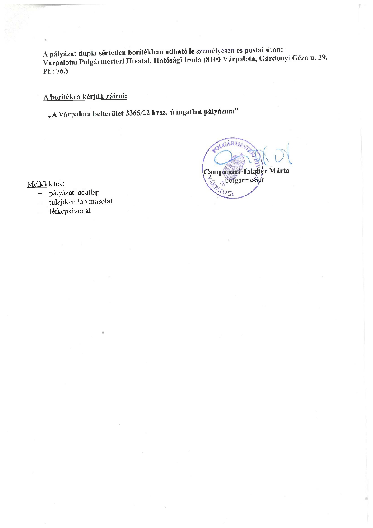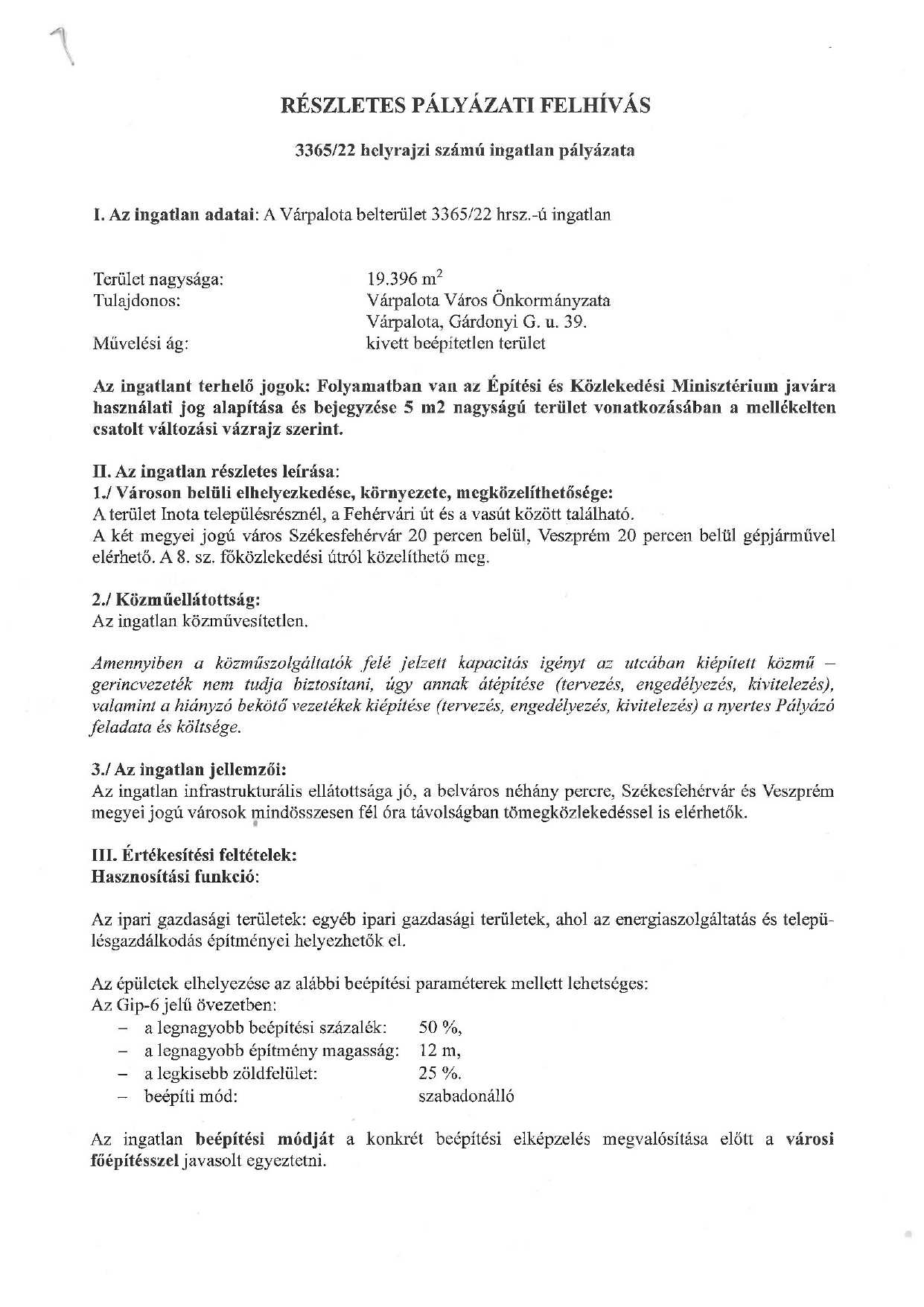 Pályázati felhívás eladásra kínált belterületi ingatlanról – Várpalota város hivatalos oldala