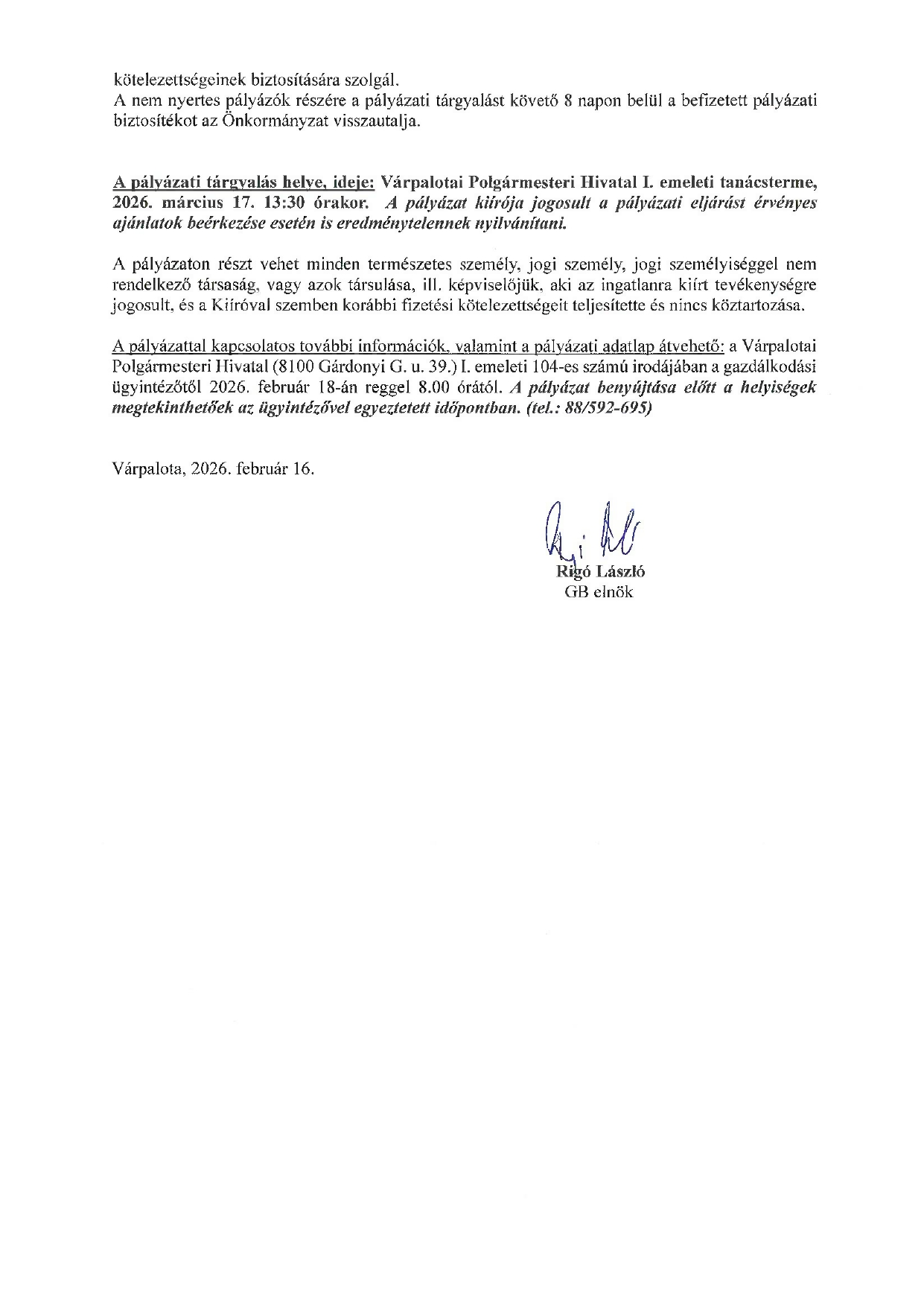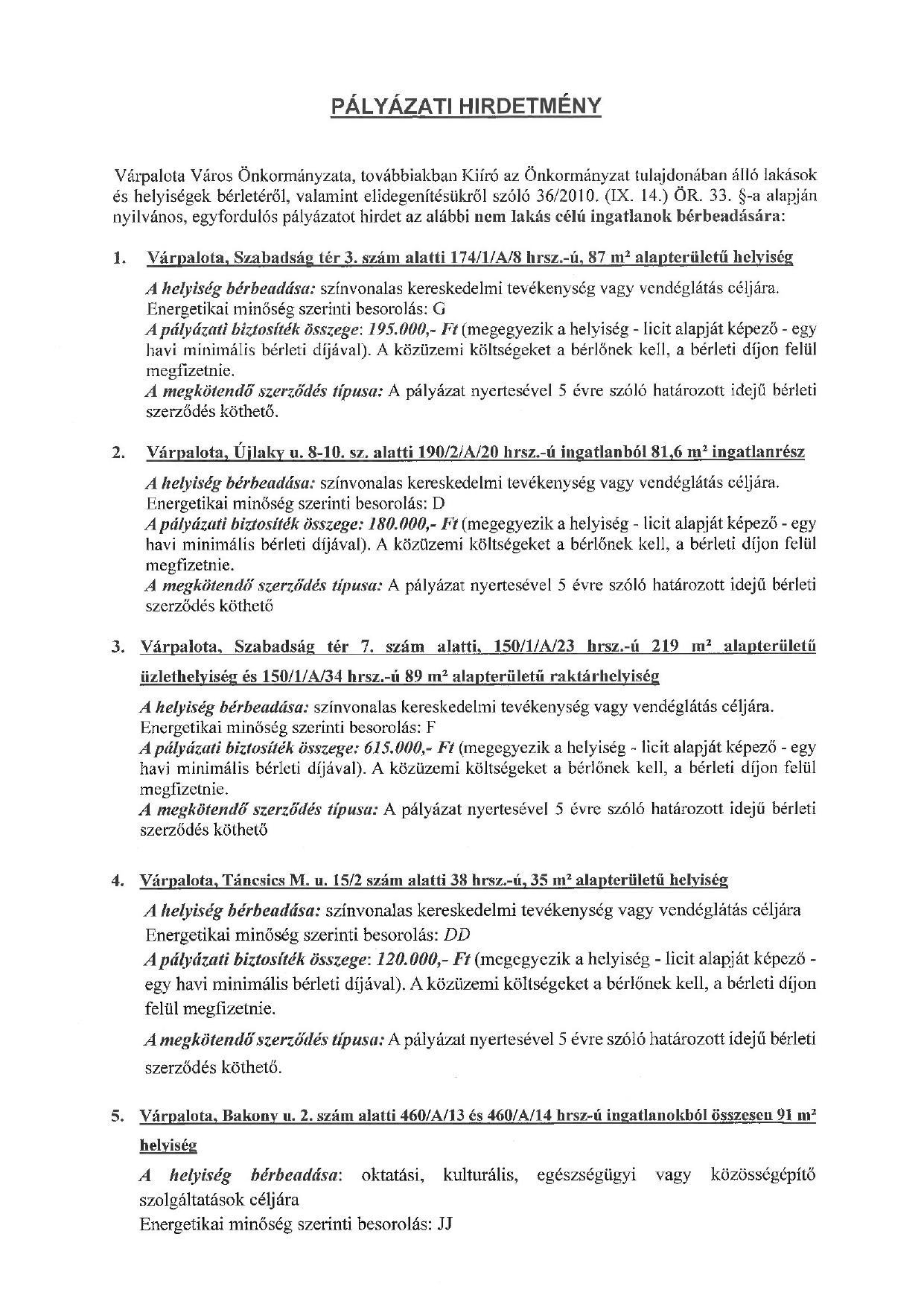 Pályázati hirdetmények – Várpalota város hivatalos oldala